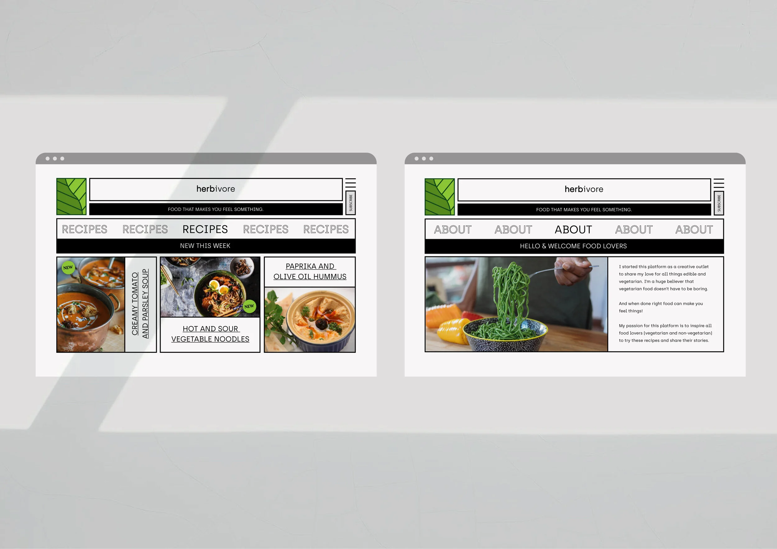 Challenge: Design the visual identity and online presence for a vegetarian and wellness lifestyle brand.