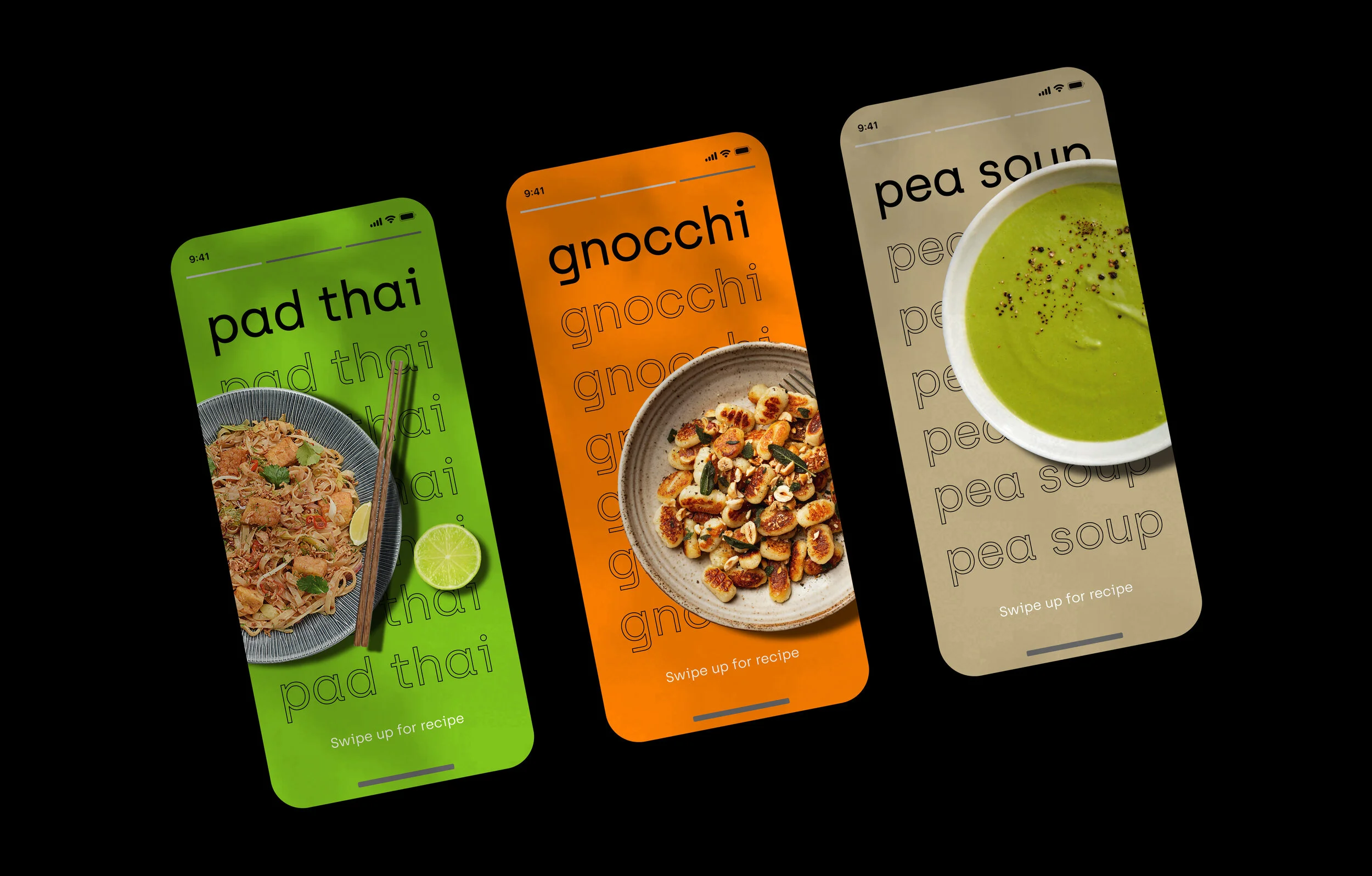 Solution: A minimal, grid oriented identity with a UI of the same nature. This simple design allows for the food to be the focus point.